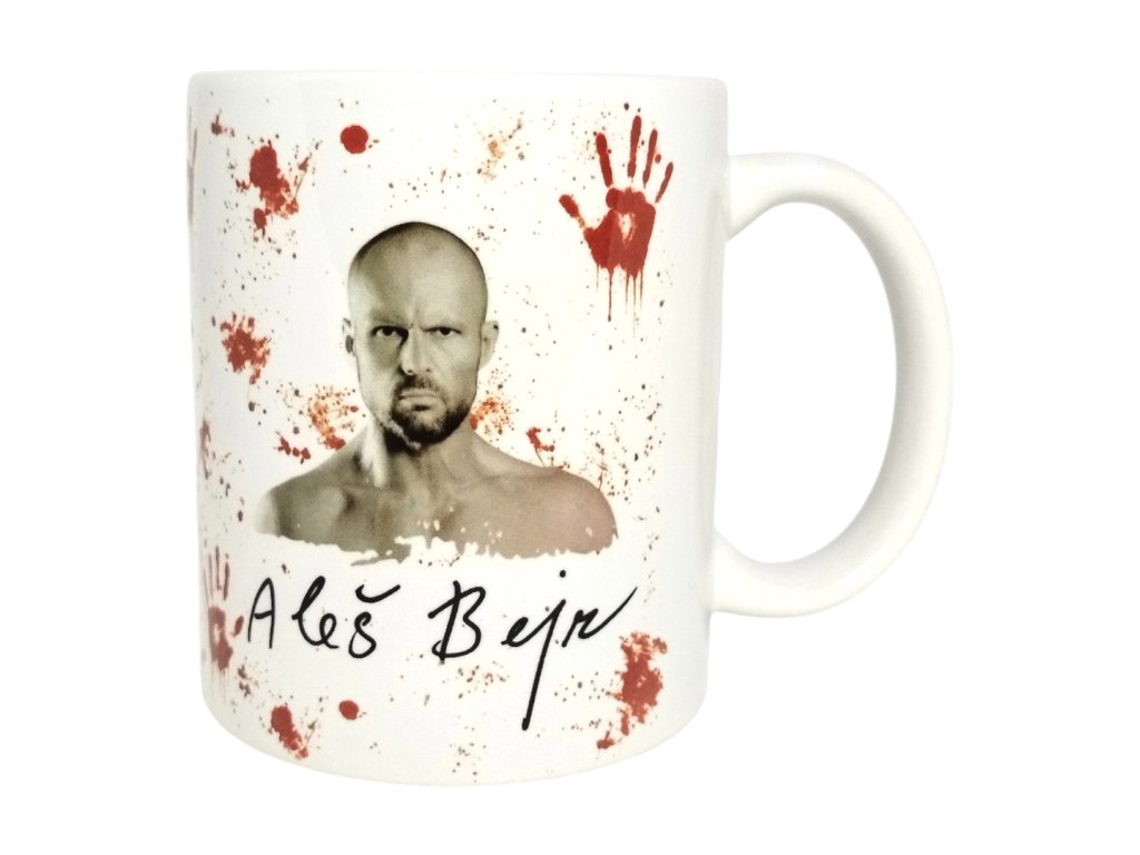 Originální hrnek Aleše Bejra s výrazným potiskem a vlastnoručním podpisem. Legendární design s motivem otisků a Bejrovy tváře – ideální pro pravé fanoušky a jejich každodenní káves!