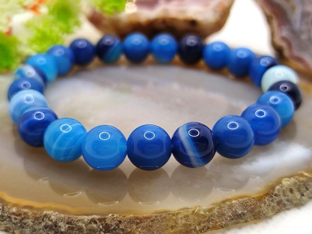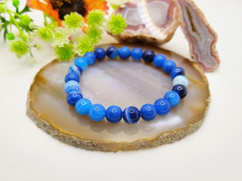 Minerální náramek z achátu, který podporuje sebedůvěru, vnitřní sílu a citovou rovnováhu. Přírodní korálky jsou navlečené na pružence pro pohodlné a snadné nošení.