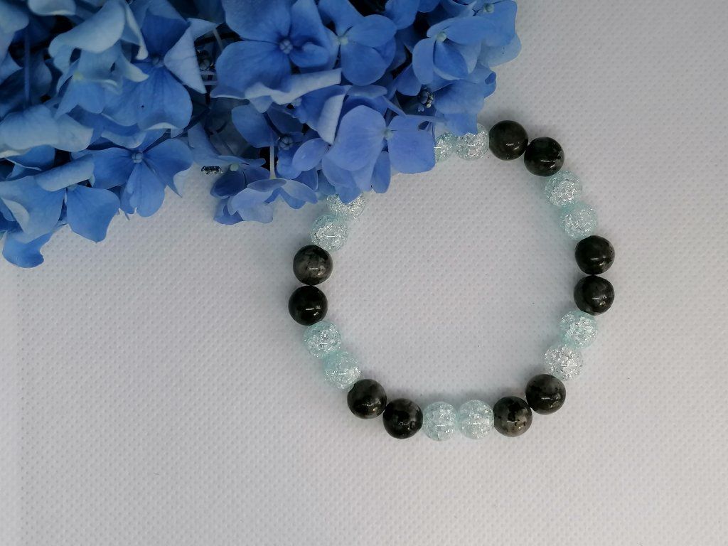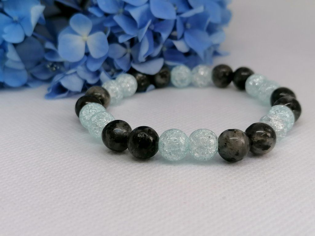 Náramek působí velmi harmonicky a svěže. Kombinace šedých tónů labradoritu s jemně modrými odlesky křišťálu vytváří elegantní šperk, který evokuje pocit svobody a nekonečného klidu. Je to ideální doplněk pro ty, kteří potřebují vnést řád do svých myšlenek a podpořit svou vnitřní vyrovnanost.
