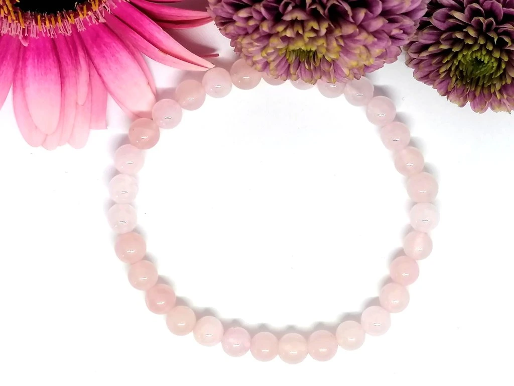 Minerální náramek z růženínu, který podporuje lásku, klid a harmonii. Přírodní korálky jsou navlečené na pružence pro pohodlné a snadné nošení.