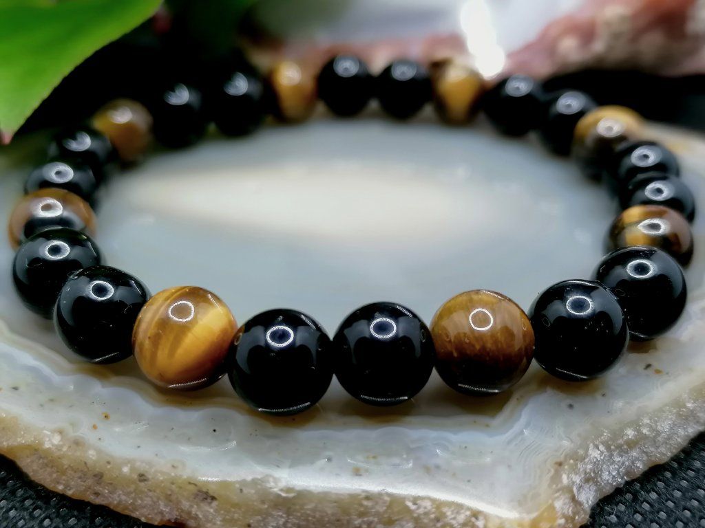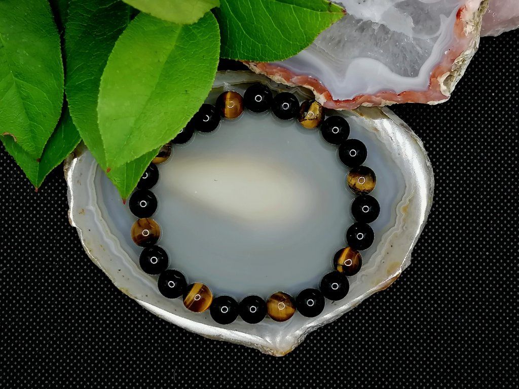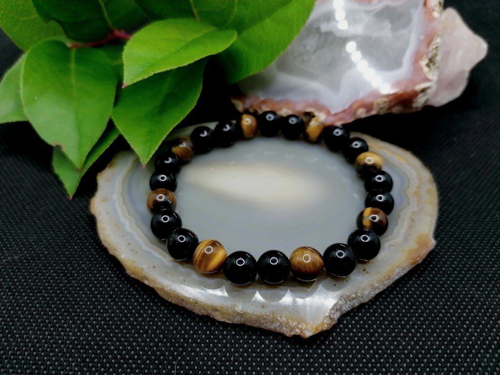 Náramek vyniká podmanivým kontrastem mezi matnou či lesklou černí obsidiánu a měňavými zlatohnědými odlesky tygřího oka. Působí velmi sofistikovaně a je ideální volbou pro ty, kteří hledají silnou psychickou oporu, chtějí se zbavit strachu a podpořit svou rozhodnost v podnikání i osobním životě.
