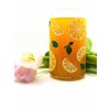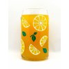 Sklenice ve tvaru plechovky s motivem citrónů.