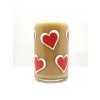 Sklenice ve tvaru plechovky s motivem srdíček.