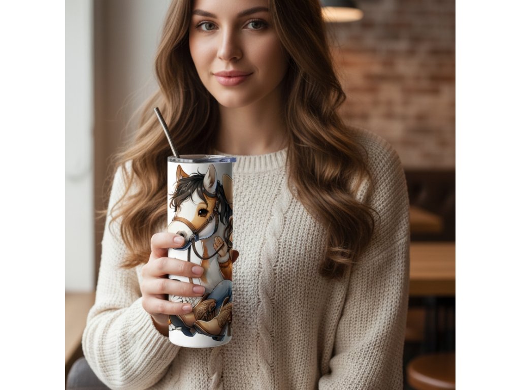 Užijte si každý nápoj stylově s naším termo kelímkem 590 ml s motivem dívky s koněm 🐴. Tento odolný nerezový kelímek je ideální pro každodenní použití – doma, v práci i na cestách.